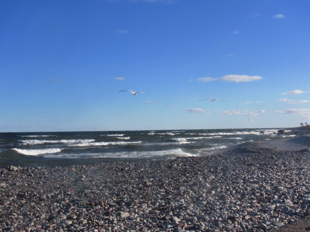 Am Freitag Morgen hat der Wind komplett von Süd auf Nord gedreht und auf 6 Beaufort zugelegt (wie angekündigt) – daher haben wir es im Hafen zunächst gemütlich angehen lassen. Nach einem späten Mittagessen (natürlich mit Lachs) ging es dann los auf Benedikts Lieblings-Platsch-Wellenkurs (hoch am Wind). Die Windrichtung passte exakt und auch die Stärke hat im Laufe des Tages immer mehr abgenommen, so dass wir bis zur Ansteuerung der Schären richtig gut segeln konnten. In der Ansteuerung begleiten uns Untiefen, die gut zu erkennen sind, da sich die ca. 1,5m hohen Wellen dort teils mit schönen Fontänen sichtbar brechen – aber wir hatten noch einen Abstand von ca. einer Seemeile .