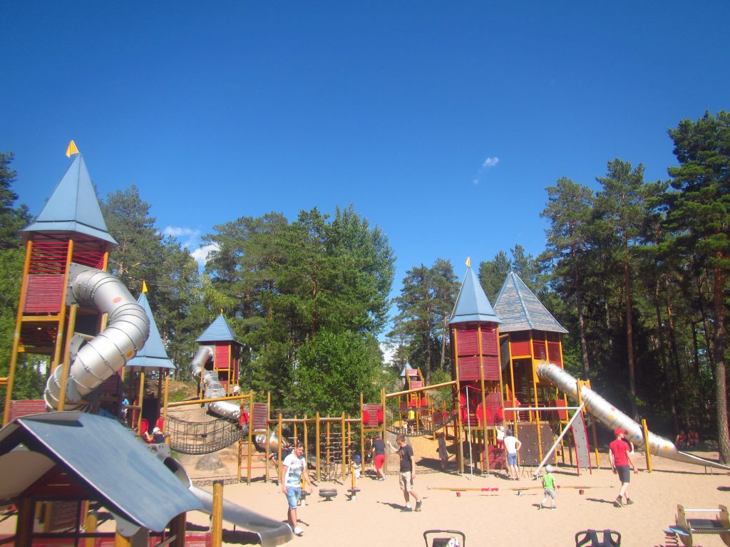 Am Donnerstag geht es nach Norrköping zunächst in den Tier- und Freizeitpark Kolmarden. Der Park liegt super ca. 100 Höhenmeter über dem Fjord und bietet nebenbei nette Aussichten auf das Wasser. Wir fahren zunächst die Achterbahn Wildfire, eine der größten Holzachterbahnen Europas. Die Strecke ist ca. 1.300 m lang und die 49 m lange erste Abfahrt hat ein Gefälle von 83°. Es gibt drei Inversionen (seitliche Überschläge) mit einer Höchstgeschwindigkeit von 113 km/h. Super! Bei der zweiten Fahrt kann man dann richtig genießen – LINK. Es gibt noch weitere Achterbahnen, aber Benedikts Favorit (neben dem Wildfire) ist eindeutig eine Schiffschaukel.