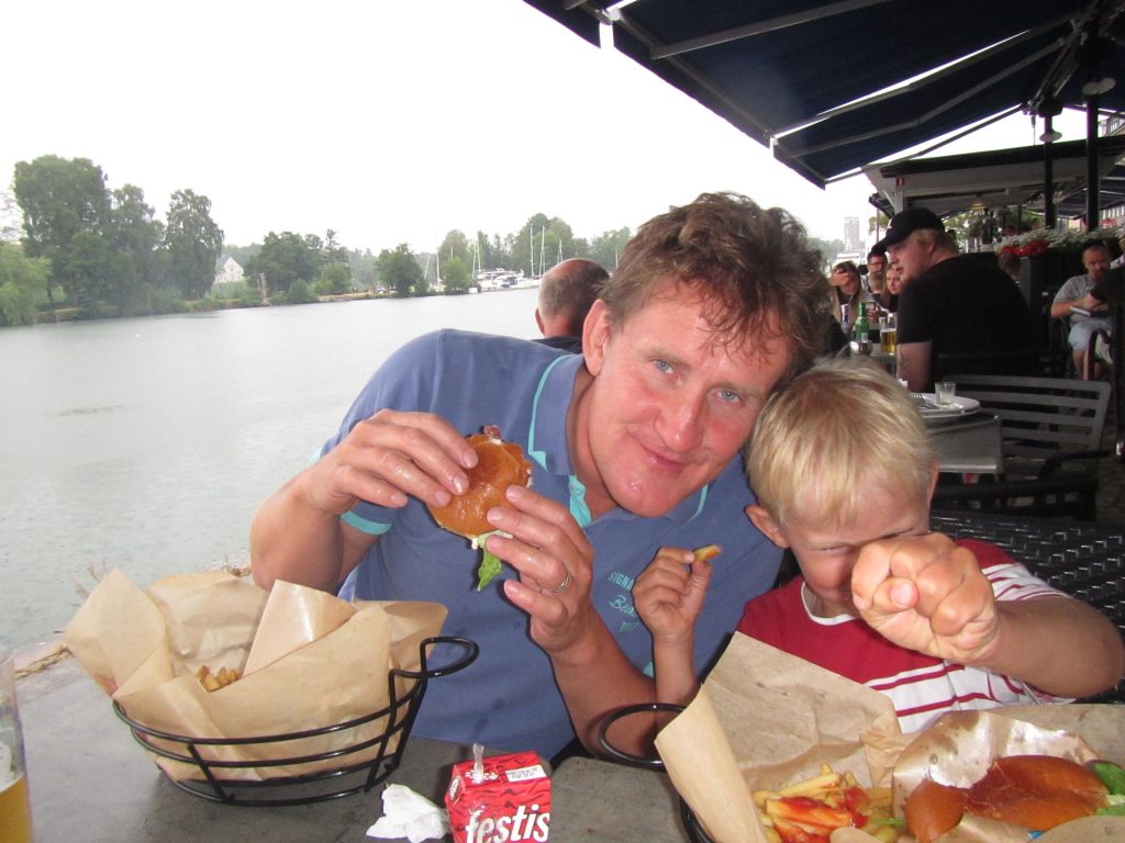 Nach einem Wasserspielplatz – direkt neben Vattenfall -sowie dem Pflücken von wild wachsenden Himbeeren am Straßenrand, müssen wir dann direkt auf den Skaterplatz, der mit drei Parcours viel zu bieten hat. Dank des Tipps der Skaterplatz-Betreuerin essen wir abends lecker im Restaurant Strandgatan, fast direkt gegenüber von unserem Liegeplatz direkt am Kanal.